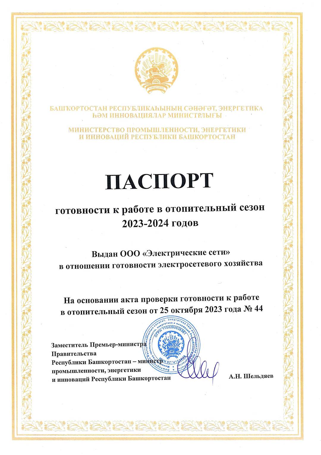 Паспорт готовности к работе в отопительный сезон 2023-2024 годов